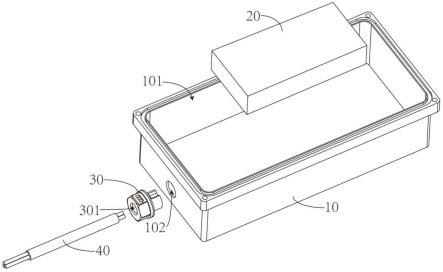 1.本實用新型實施例屬于電器設備技術領域,具體地說,涉及一種防水電器設備。背景技術:2.現階段,一些電器設備用在戶外或有水汽的環境內,而內部元器件接觸水或其他雜物會損壞,于是都用防水盒保護起來,元器件